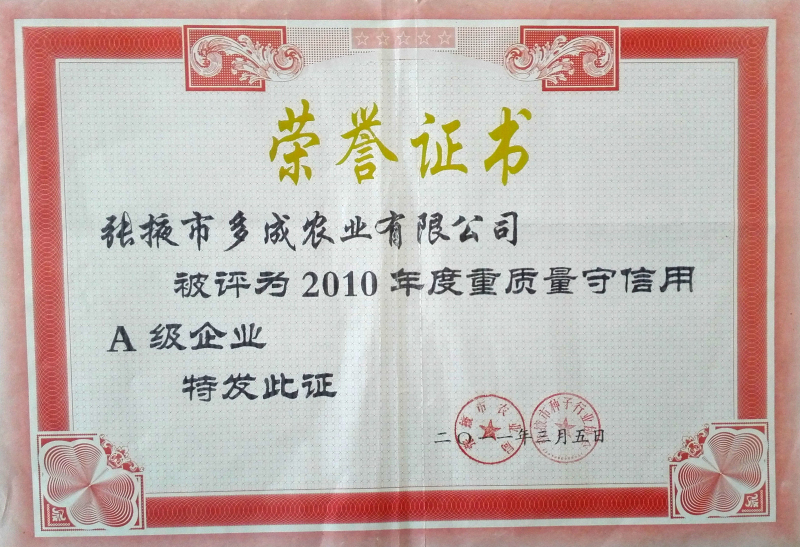 您現(xiàn)在的位置: 張掖市多成農(nóng)業(yè)有限公司 >> 資質(zhì)榮譽(yù) >> 公司榮譽(yù) >> 正文